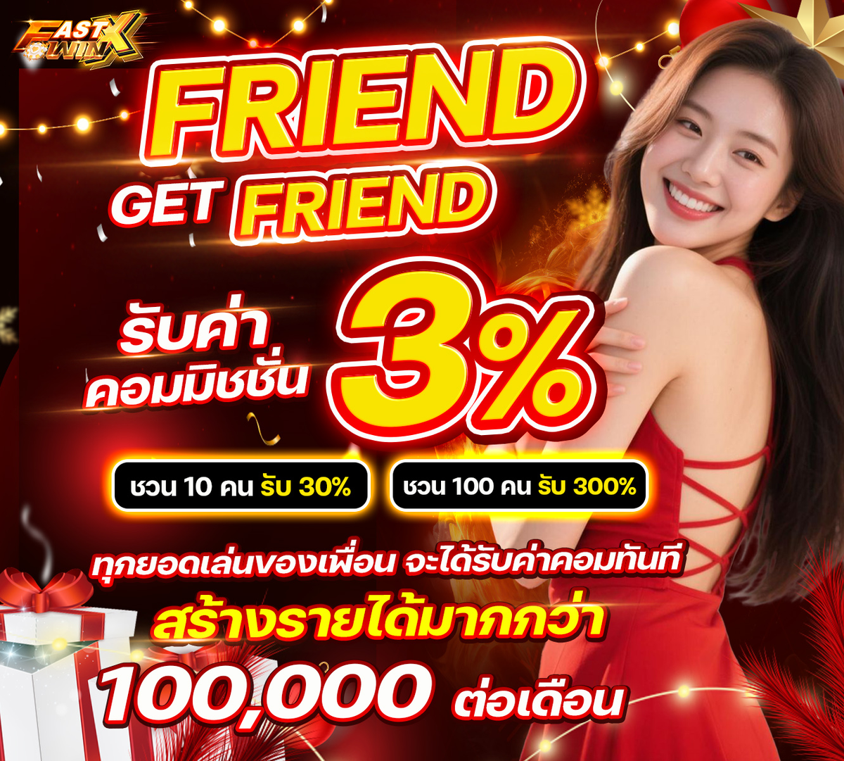 💰ลิงค์รับทรัพย์ แนะนำเพื่อนมาเล่นเว็บ FASTXWIN รับค่าคอมมิชชั่น 3% ทุกยอดเล่นของเพื่อน ตลอดชีพ!!